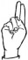 На ћирилици написано ИСИДОРА АКСЕНТИЋ састоји се из 15 слова [?]. Исписано ћириличном једноручном азбуком за глувонеме: